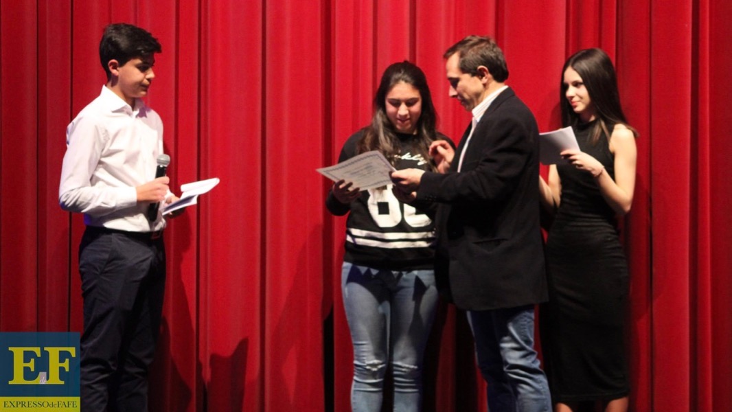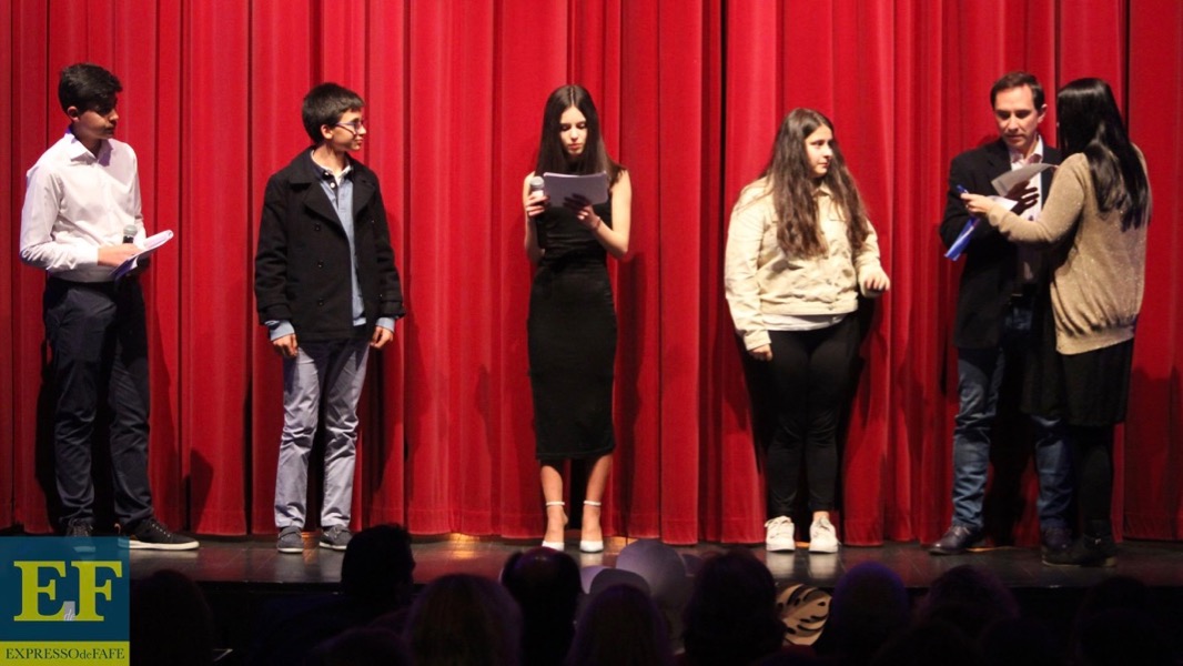 Este ano foram os alunos do 9.ºE, Catarina Silva e Carlos Batista, que acolheram a comunidade educativa, os antigos alunos, as entidades oficiais e, claro, apresentaram todas as dinâmicas deste evento.