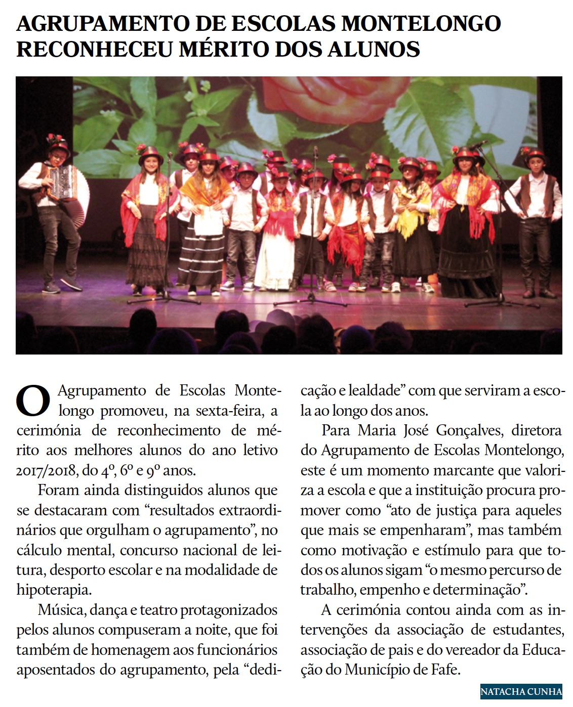 O Agrupamento de Escolas Montelongo realizou a «Cerimónia de Reconhecimento do Mérito e Homenagem» no dia 22 de Março, no Cineteatro de Fafe, pelas 21h00.