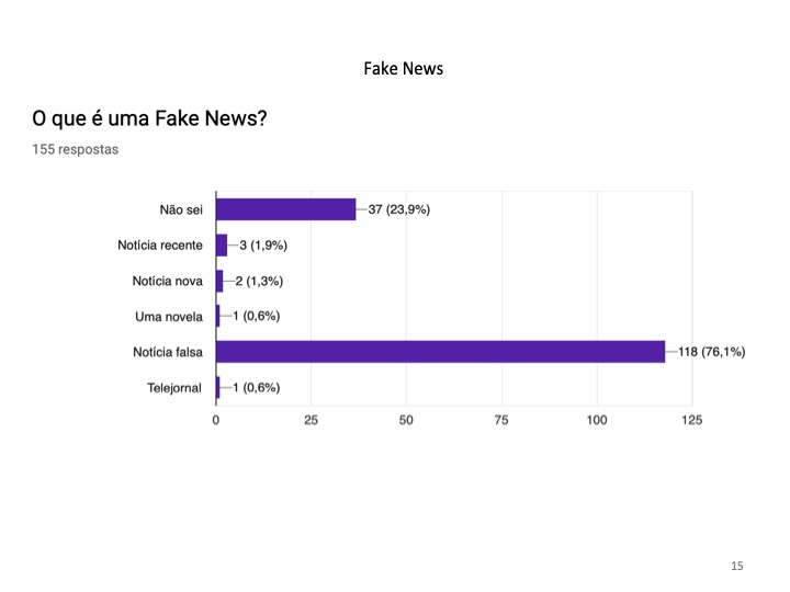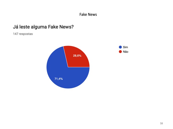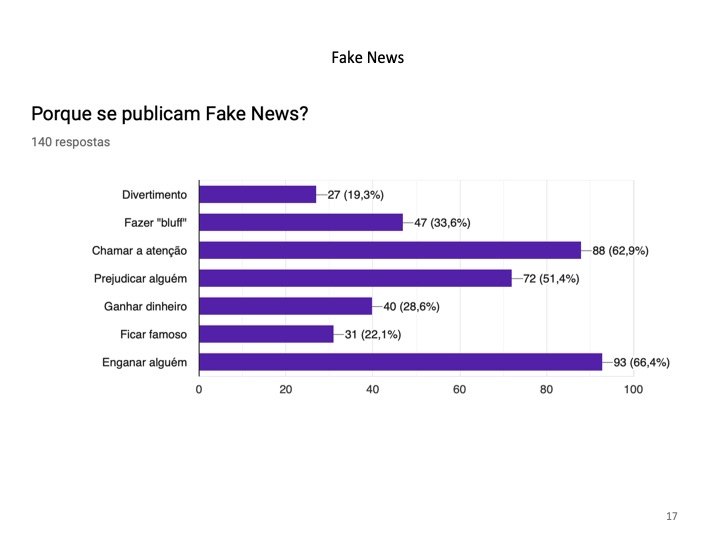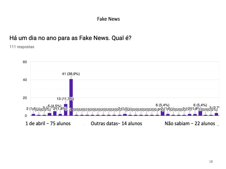 Outro perigo do uso da Internet prende-se com a quantidade infinita de informação a que os alunos têm acesso e na capacidade de distinguir as informações verdadeiras das falsas. Demonstrou-se que 71% dos inquiridos já leram uma fake news e 66.4% sabe o significado dessa palavra.