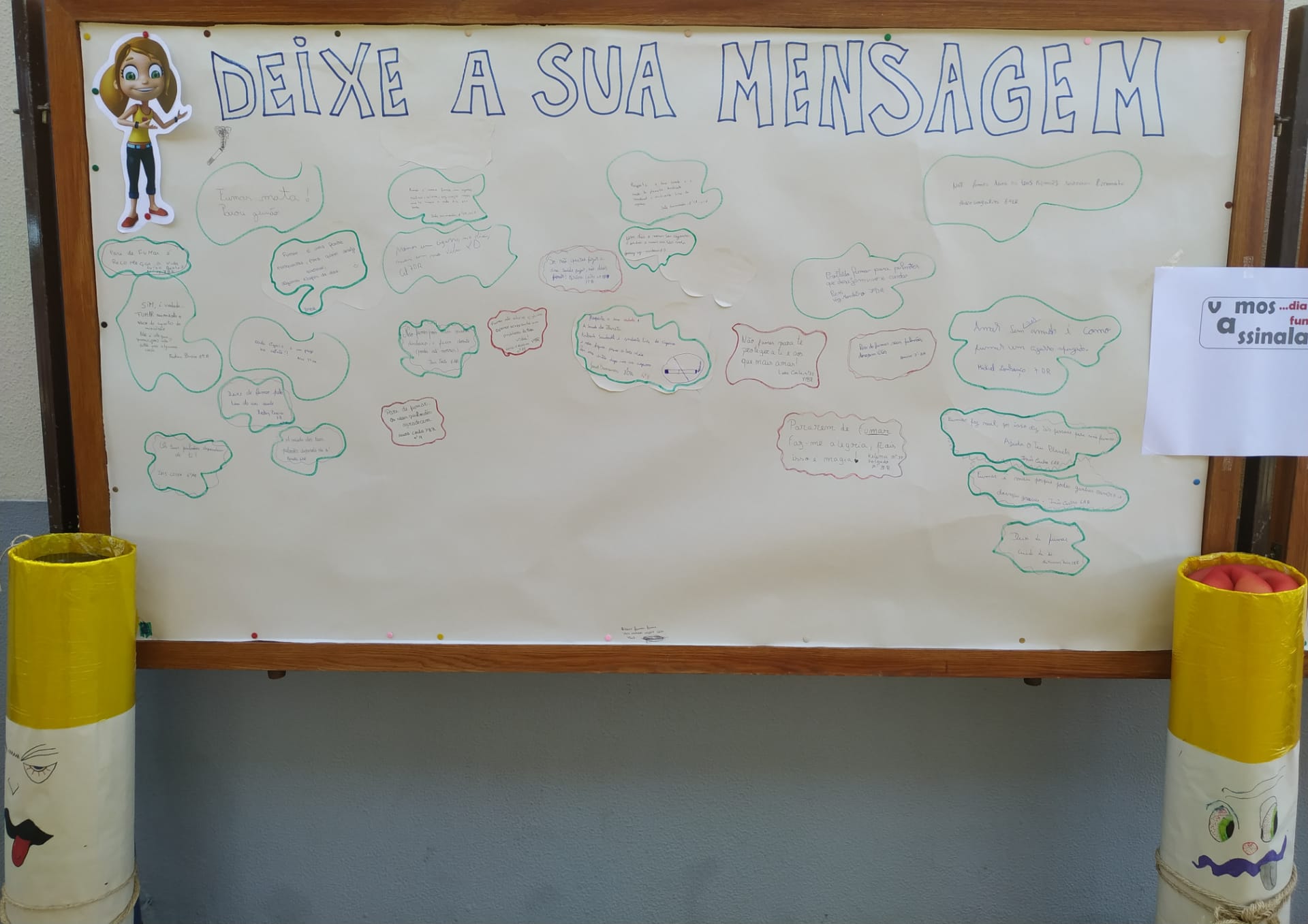 Tiveram parte ativa na colaboração alunos do 2.º e 3.º CEB, que preencheram o Mural de Mensagens, ao longo do dia, com as suas frases / slogans alusivas às problemáticas tabágicas. Foi disponibilizada, pela equipa PES, a curta metragem para visualização e debate, em contexto de sala de aula “Opte por amar mais – uma princesa não fuma”, lançada pelo Ministério da Saúde em maio de 2018, mas que continua bem atual e pode ser visualizada abaixo.