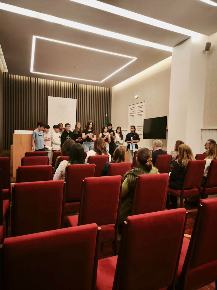 O grupo visitou a Câmara Municipal de Fafe, tendo sido recebido pela Sr.ª Doutora Paula Nogueira, Vereadora da Educação, e outros colaboradores do município. Percorreram lojas, esplanadas, o posto da GNR e outros espaços, onde declamaram poemas e animaram quem os ouvia. Entre declamações e conversas sobre poesia, viveu-se um dia único, repleto de cultura e emoção, que envolveu tanto os alunos como a comunidade local.