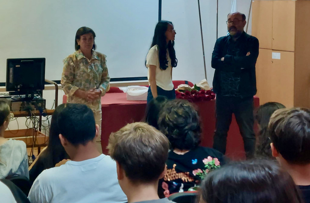 Os alunos do 9CM foram os escolhidos para dinamizarem uma sessão informal e aberta à comunidade educativa, porque a Professora Odete fora Diretora de Turma e Professora de Ciências Naturais deles, nos 5.º e 6.º anos.