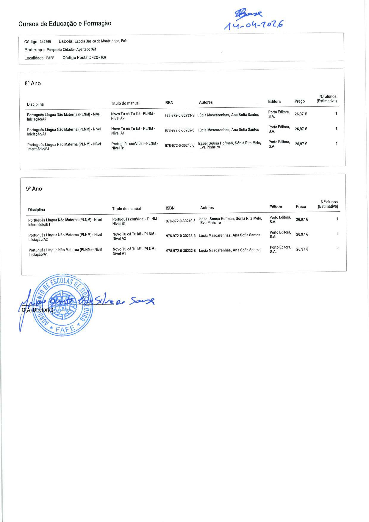 Qua. Abr. 15 Ano letivo 2026/2027 - Lista de manuais escolares adotados Print Email Clicar aqui para download da lista de manuais em pdf