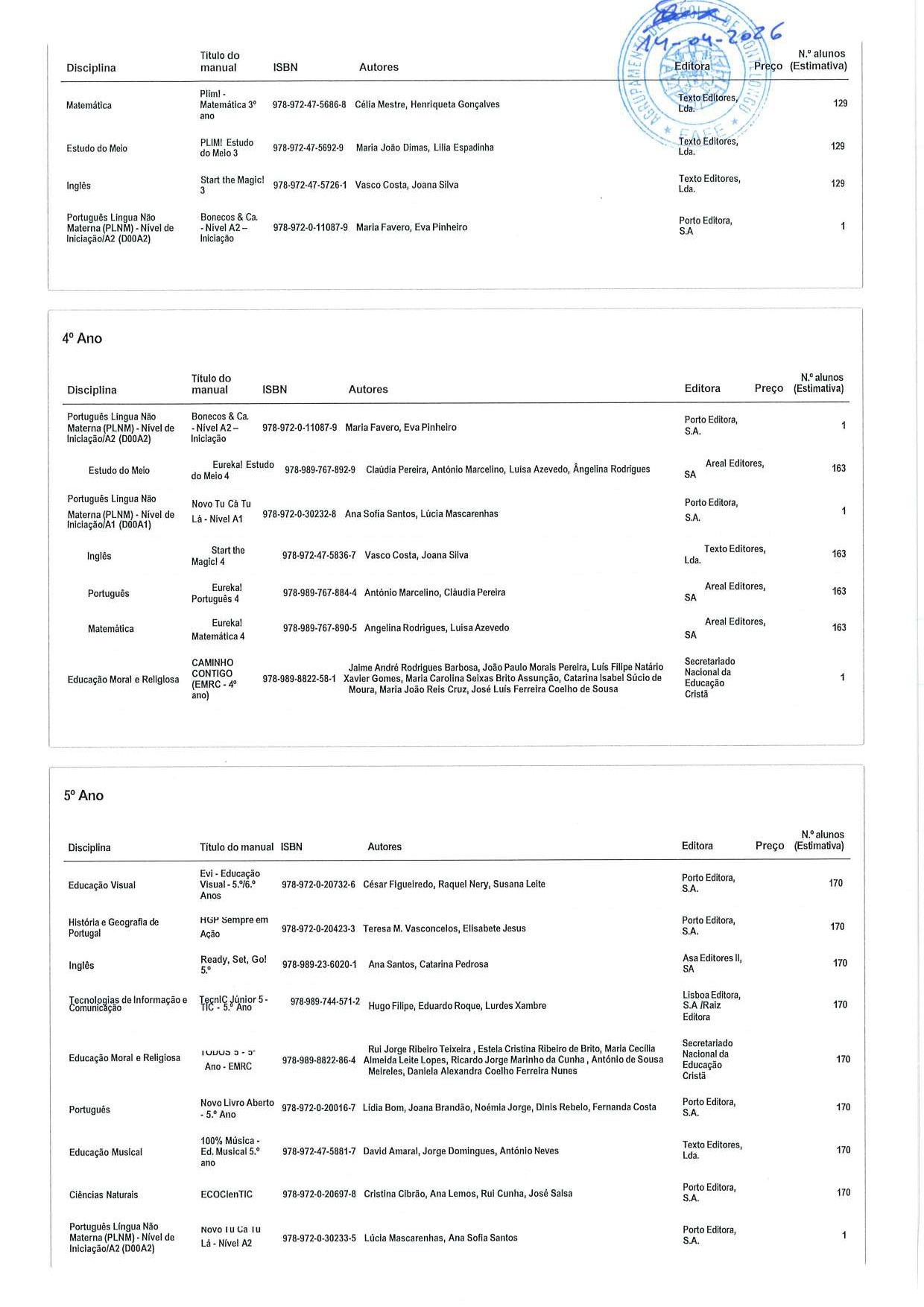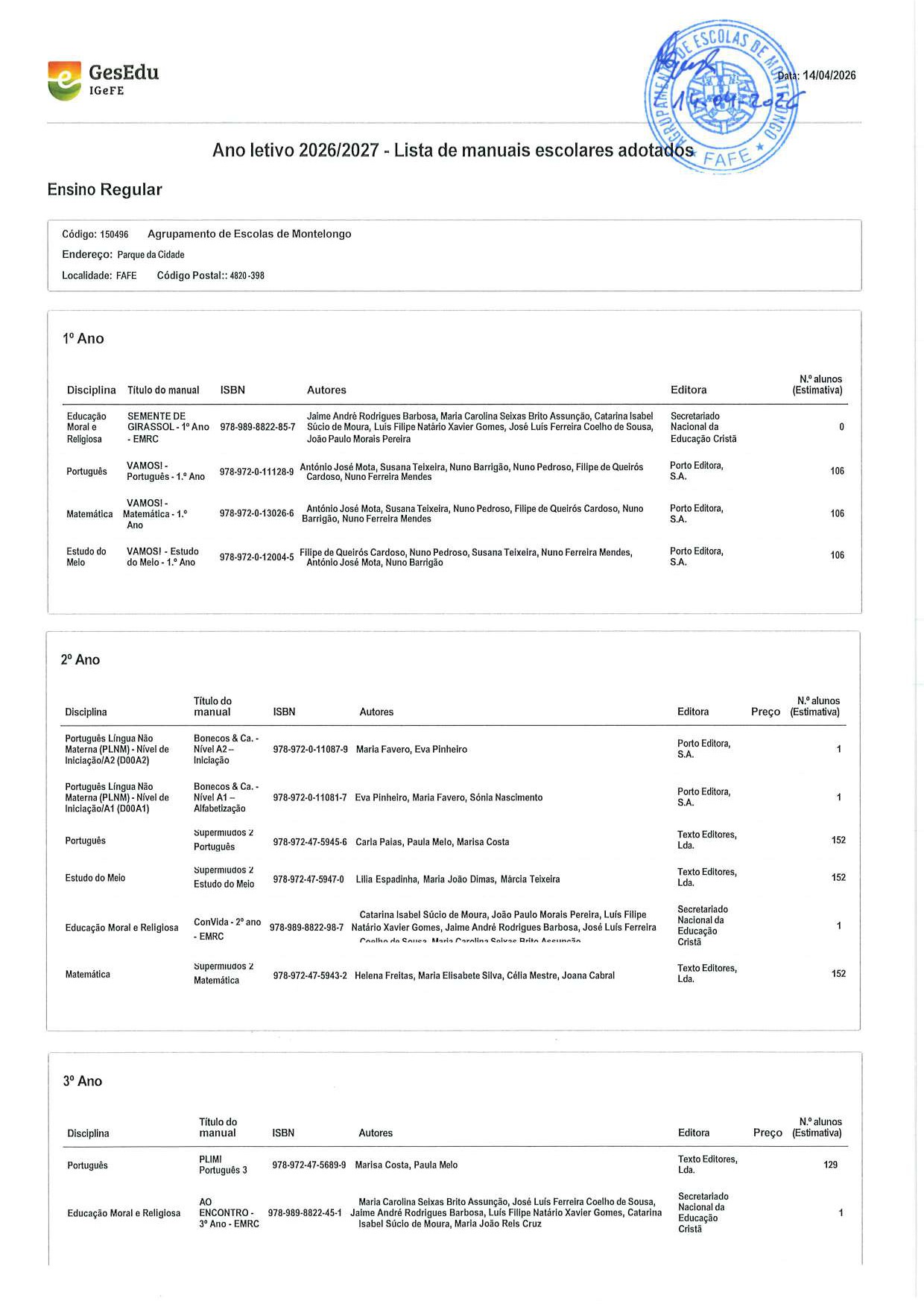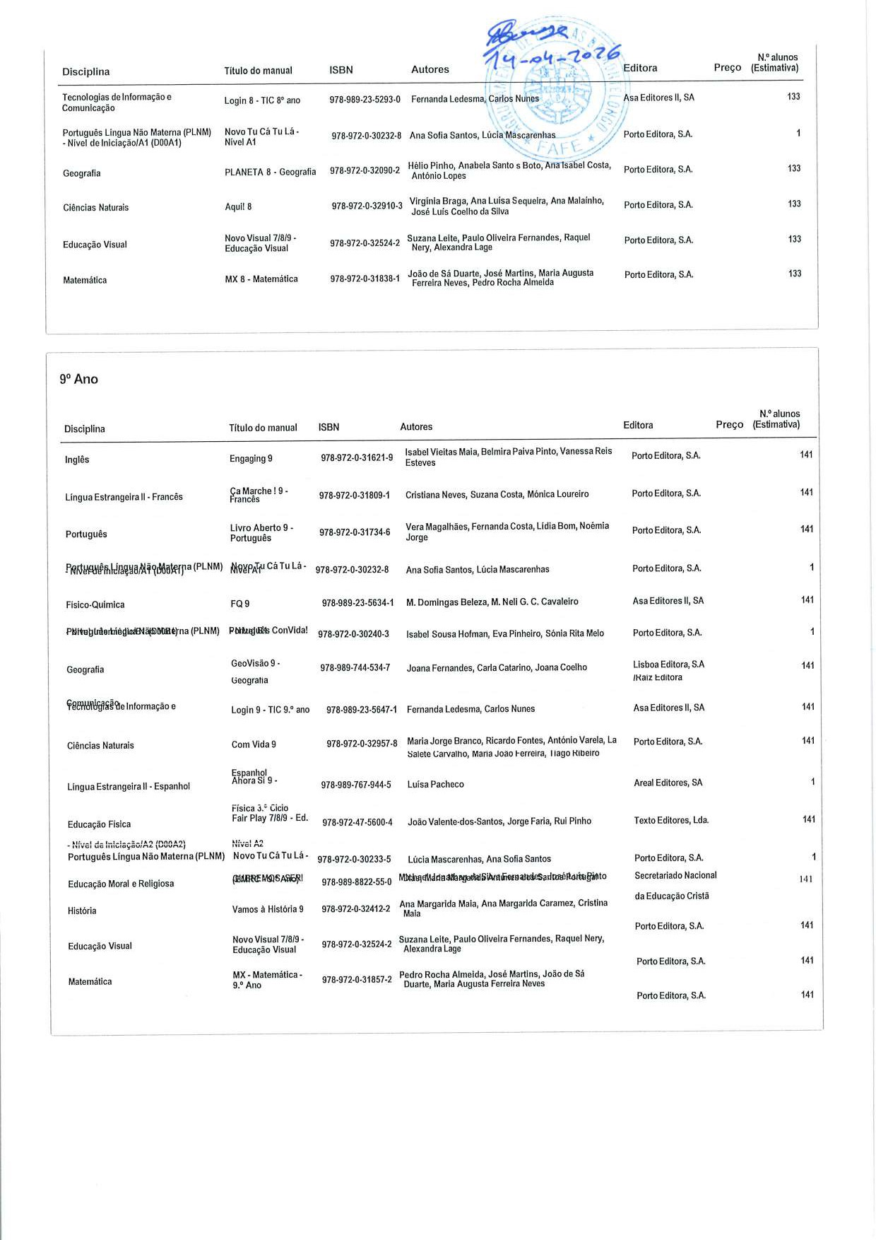 Qua. Abr. 15 Ano letivo 2026/2027 - Lista de manuais escolares adotados Print Email Clicar aqui para download da lista de manuais em pdf